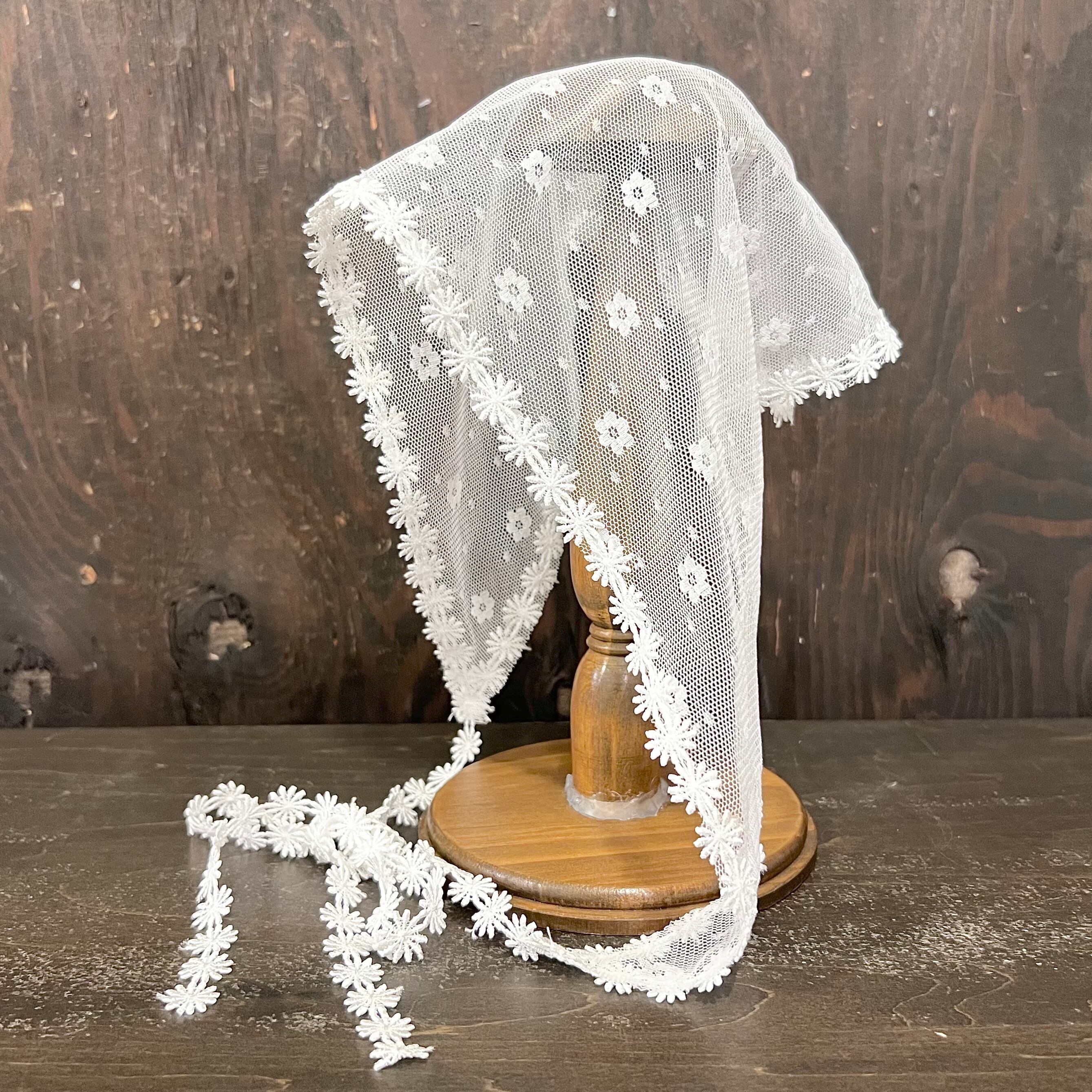 三角巾のような形で、ヘアバンドやスカーフのように頭に巻いて着用するヘアアクセサリーです。