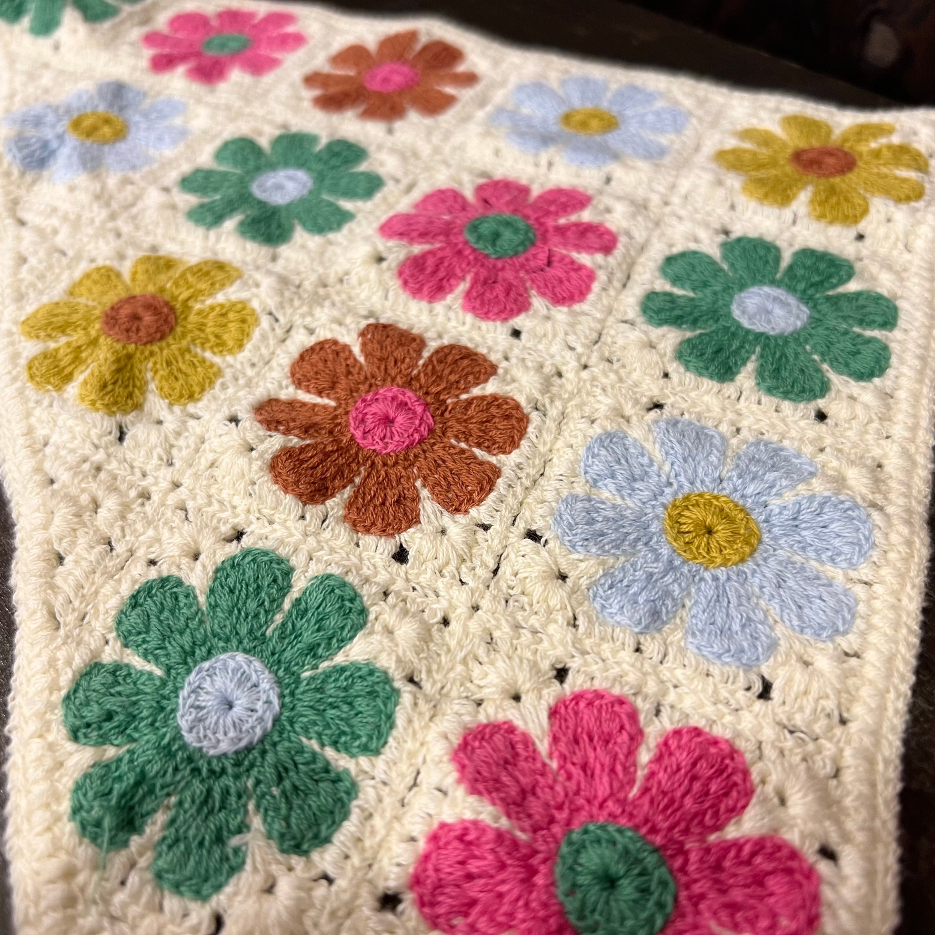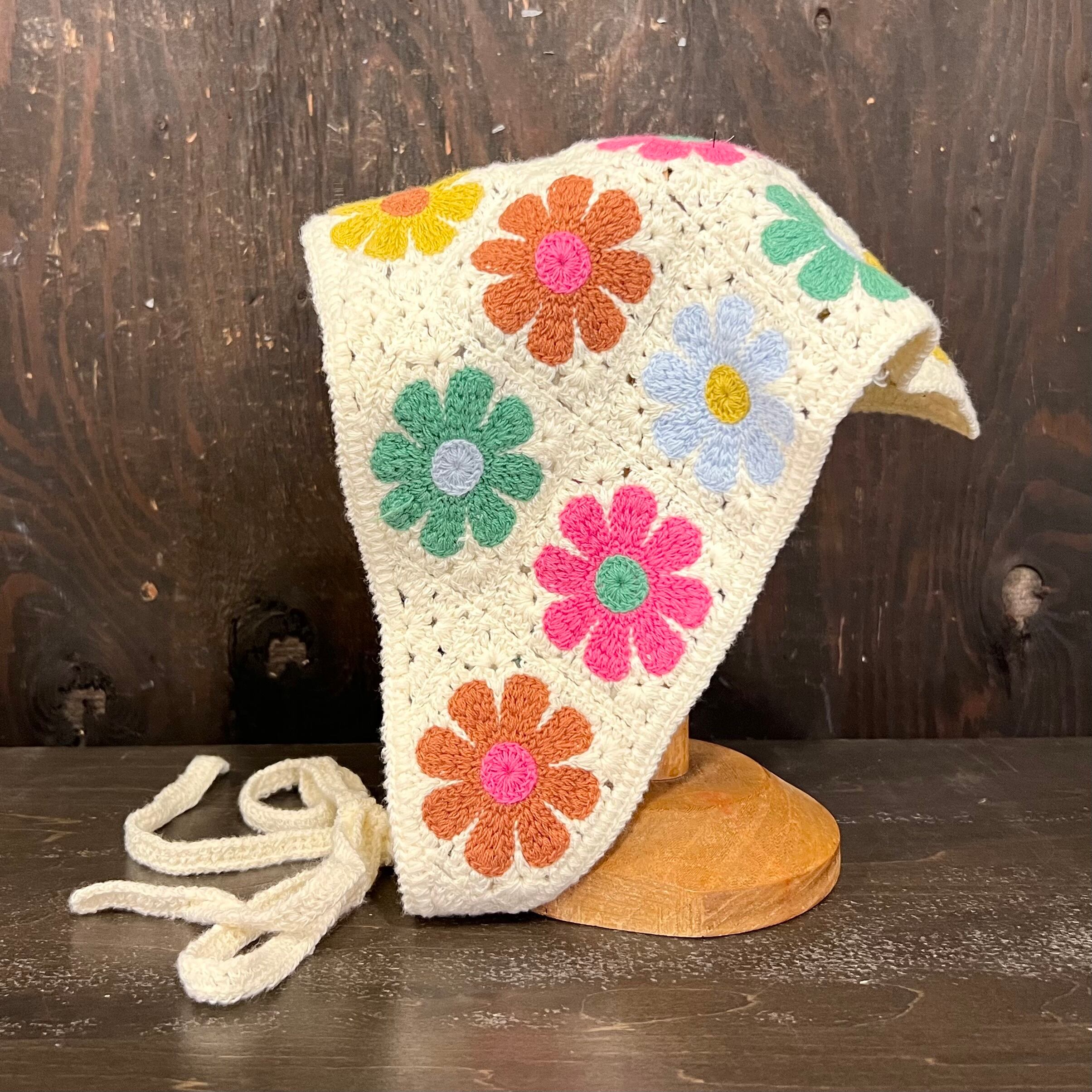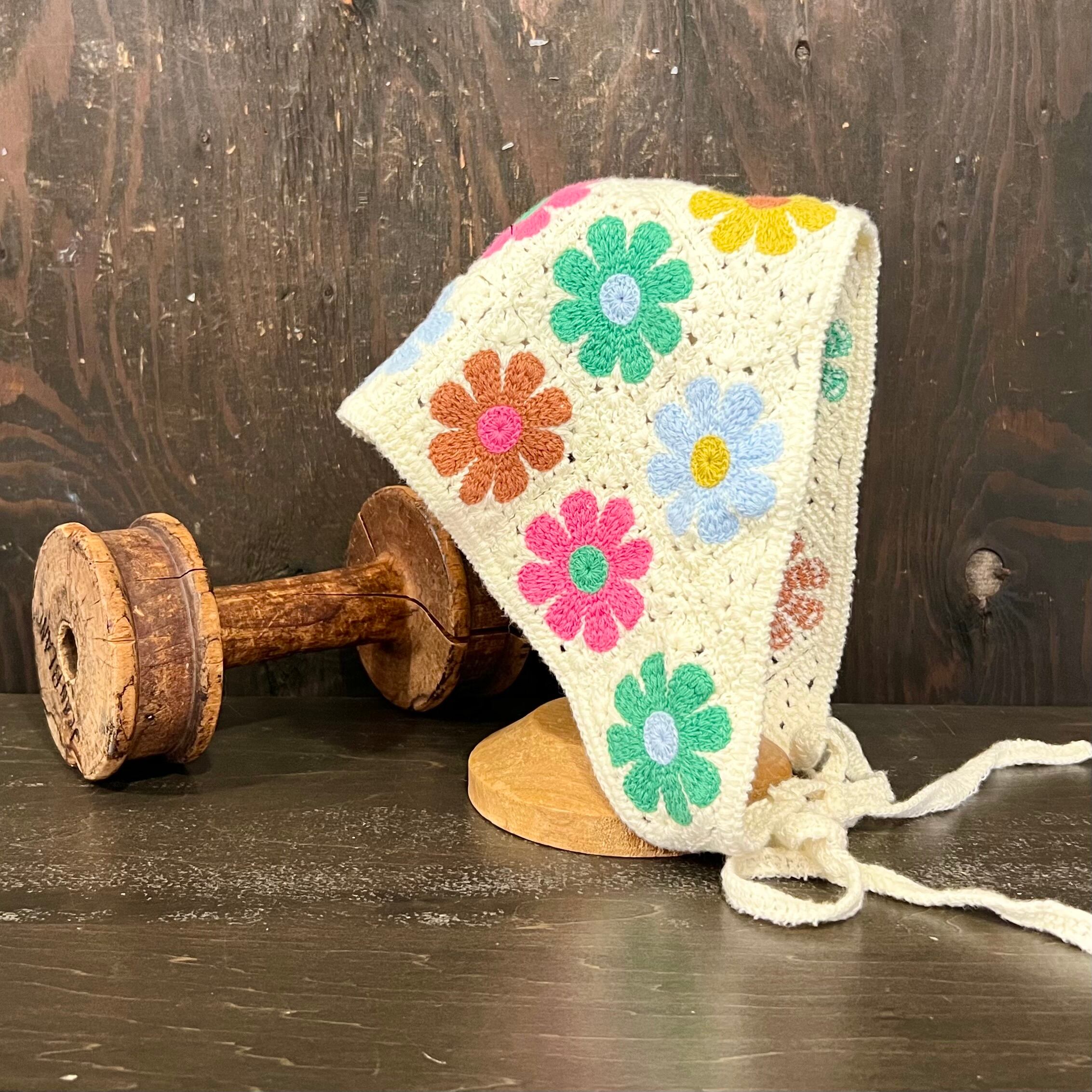 コットン マルチカラーフラワークロシェ バブーシュカです。