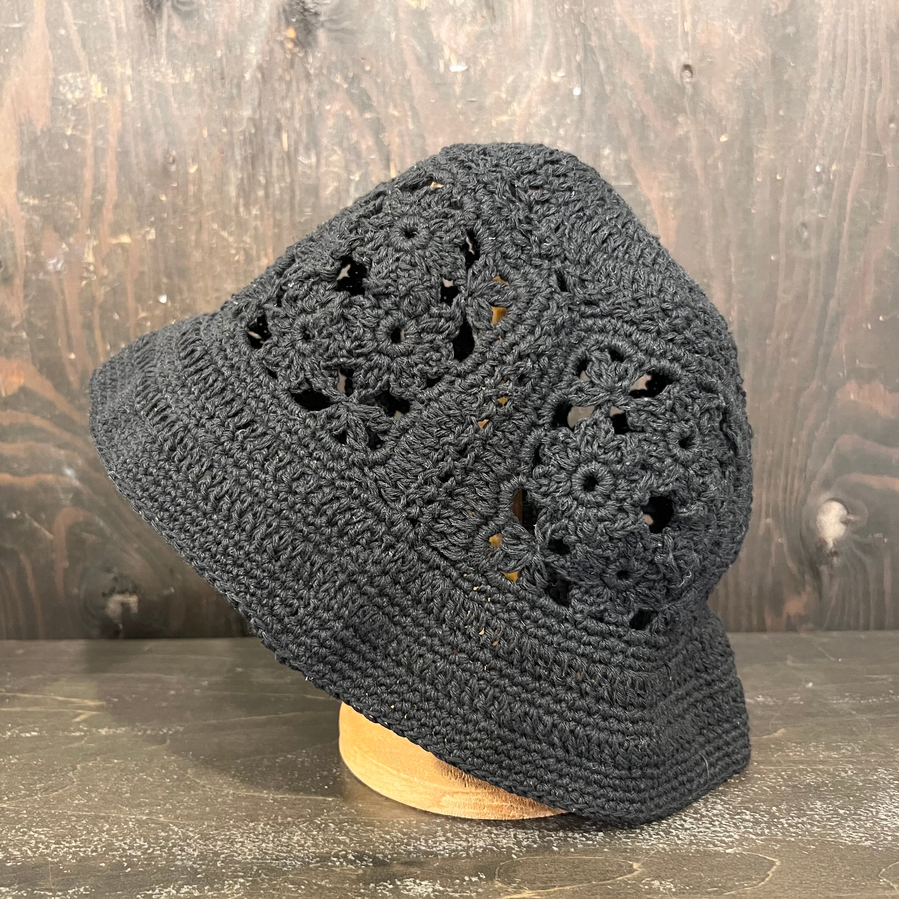 フラワーの形に透かし編みした、春夏仕様のニットハットになります。