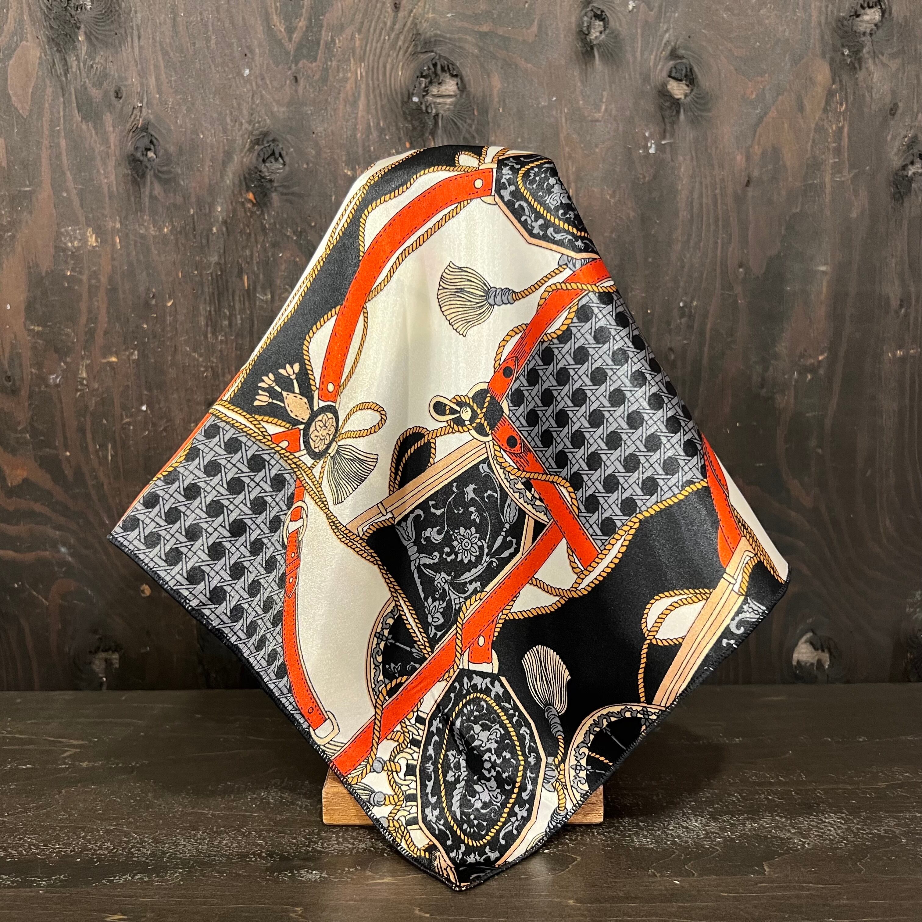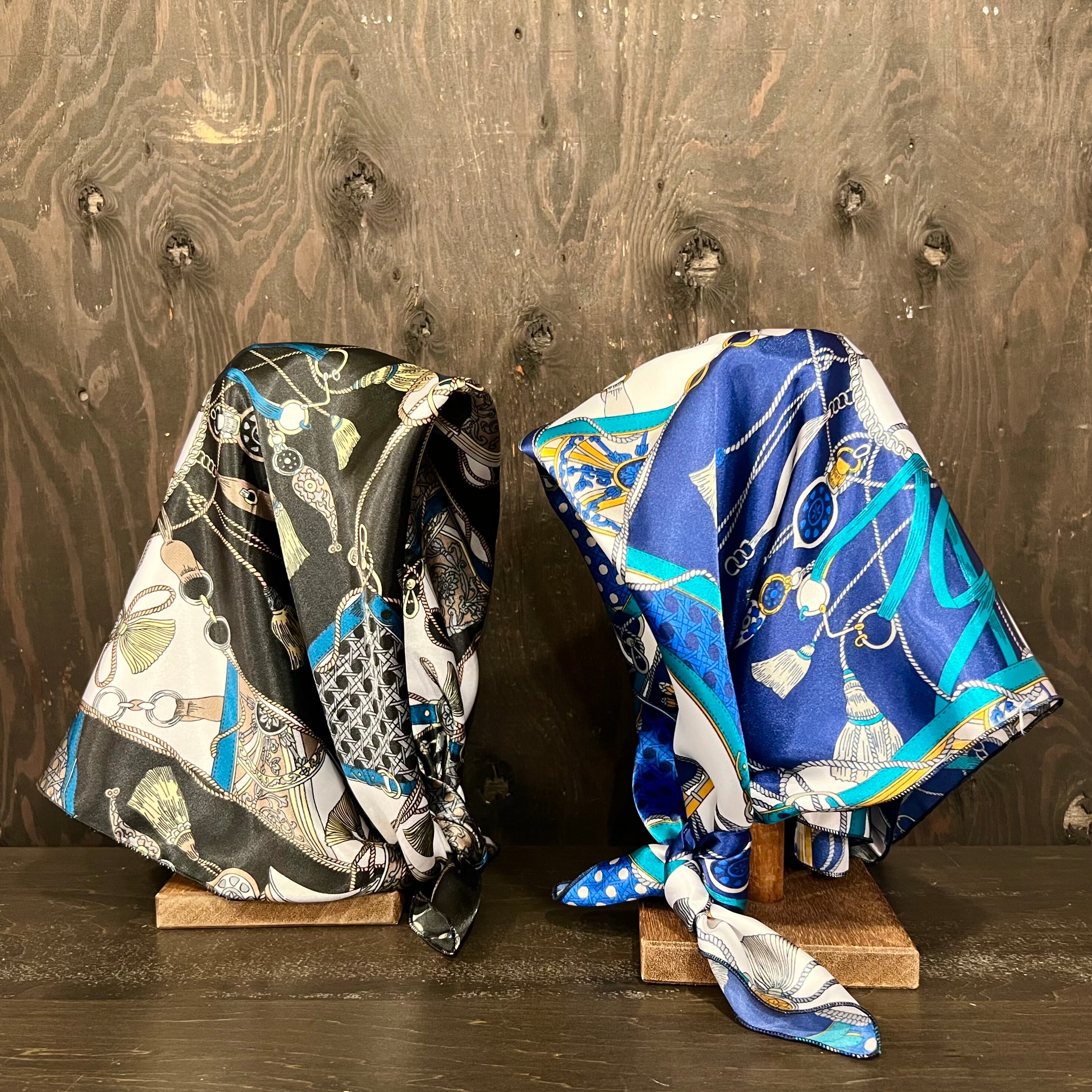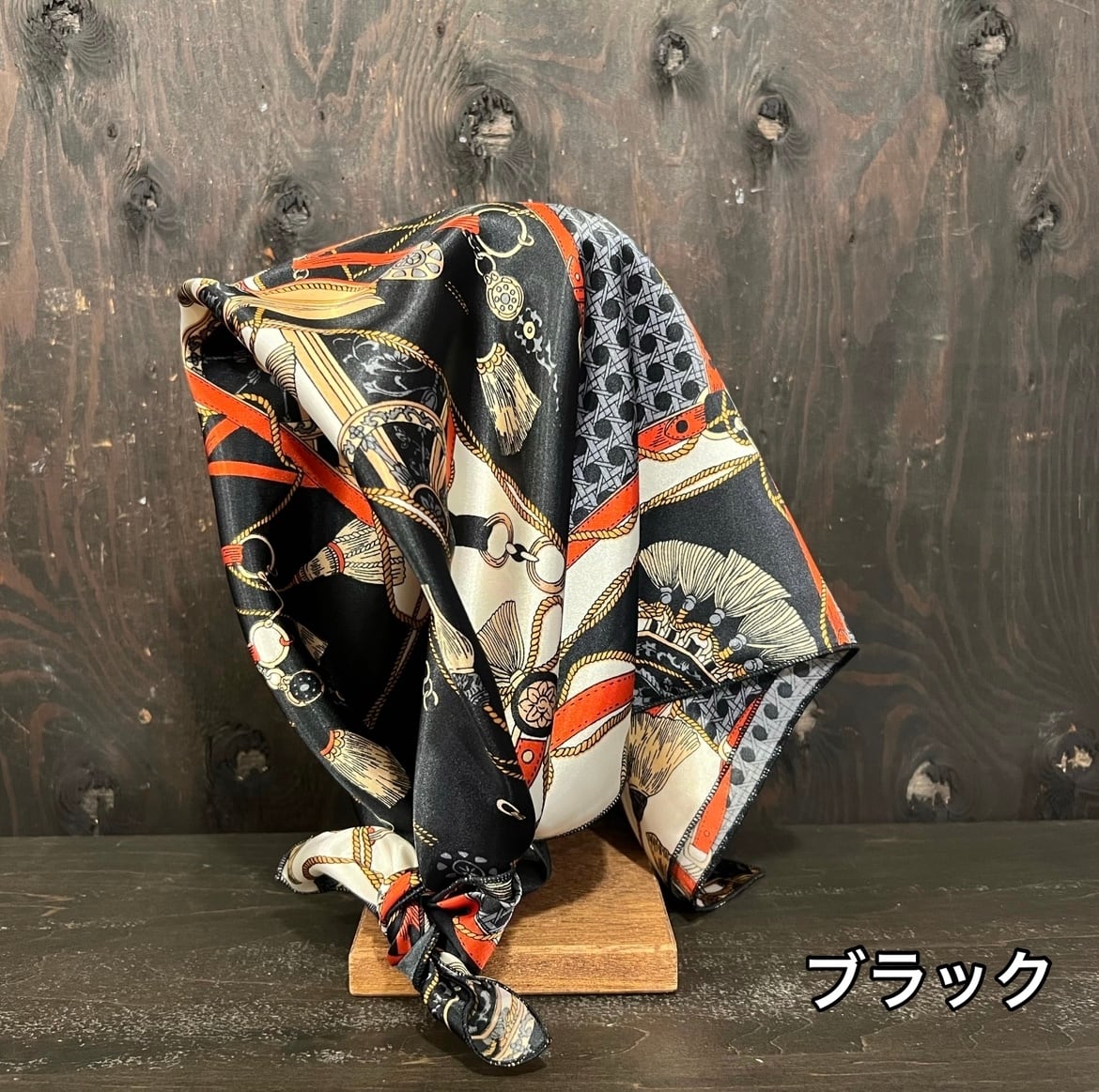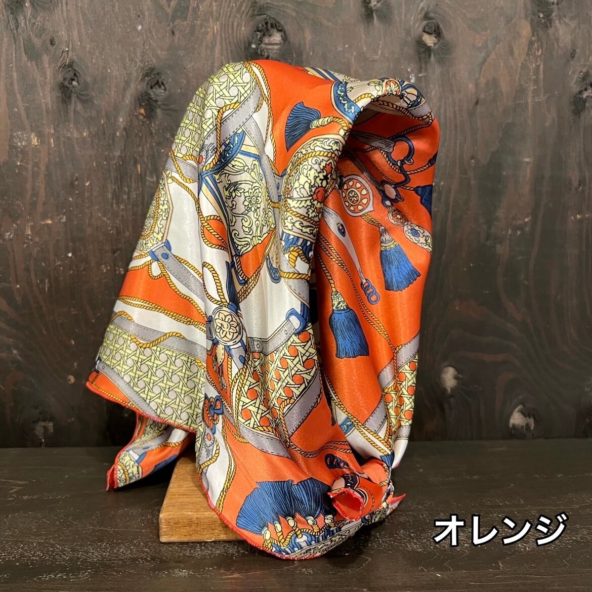 今季のトレンドアイテム、サテン素材の大判サイズのスカーフになります。