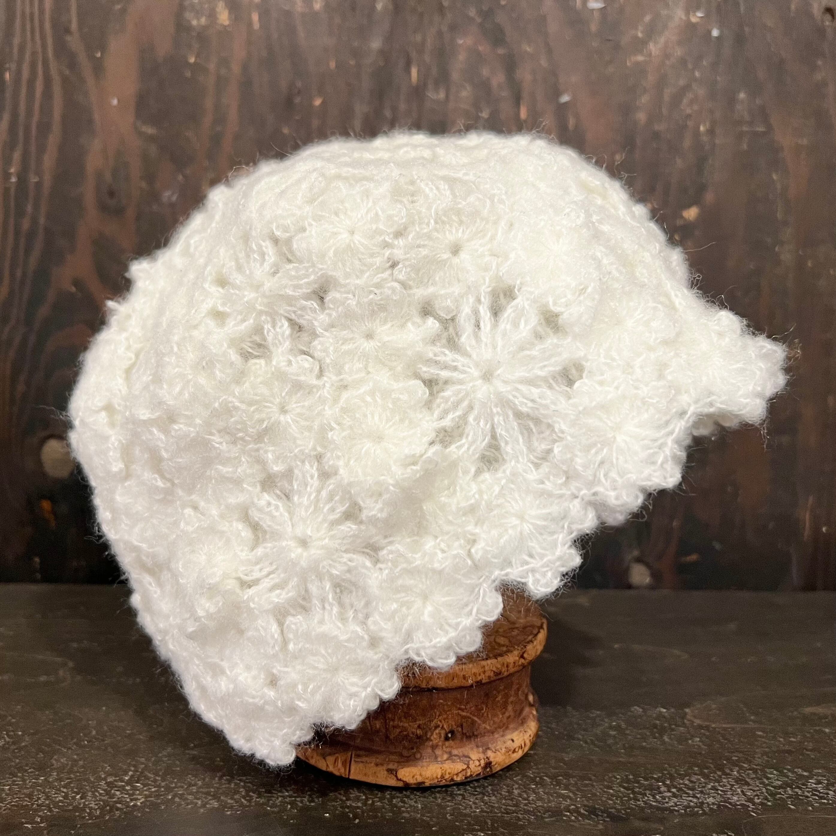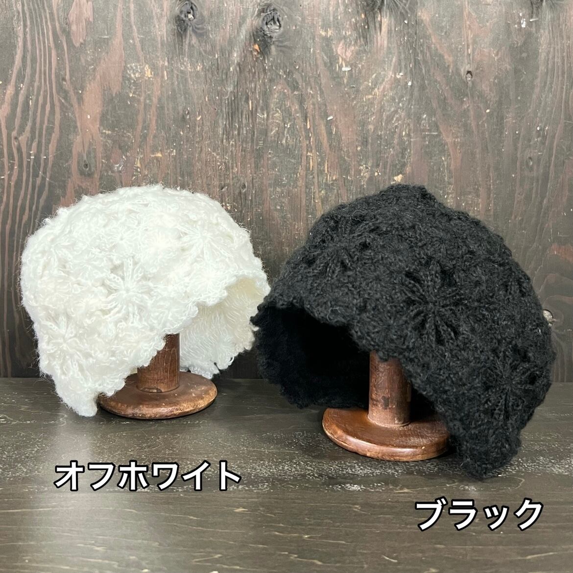 花の形に編み込まれた、シンプルでもポイントになる秋冬ニット帽です。