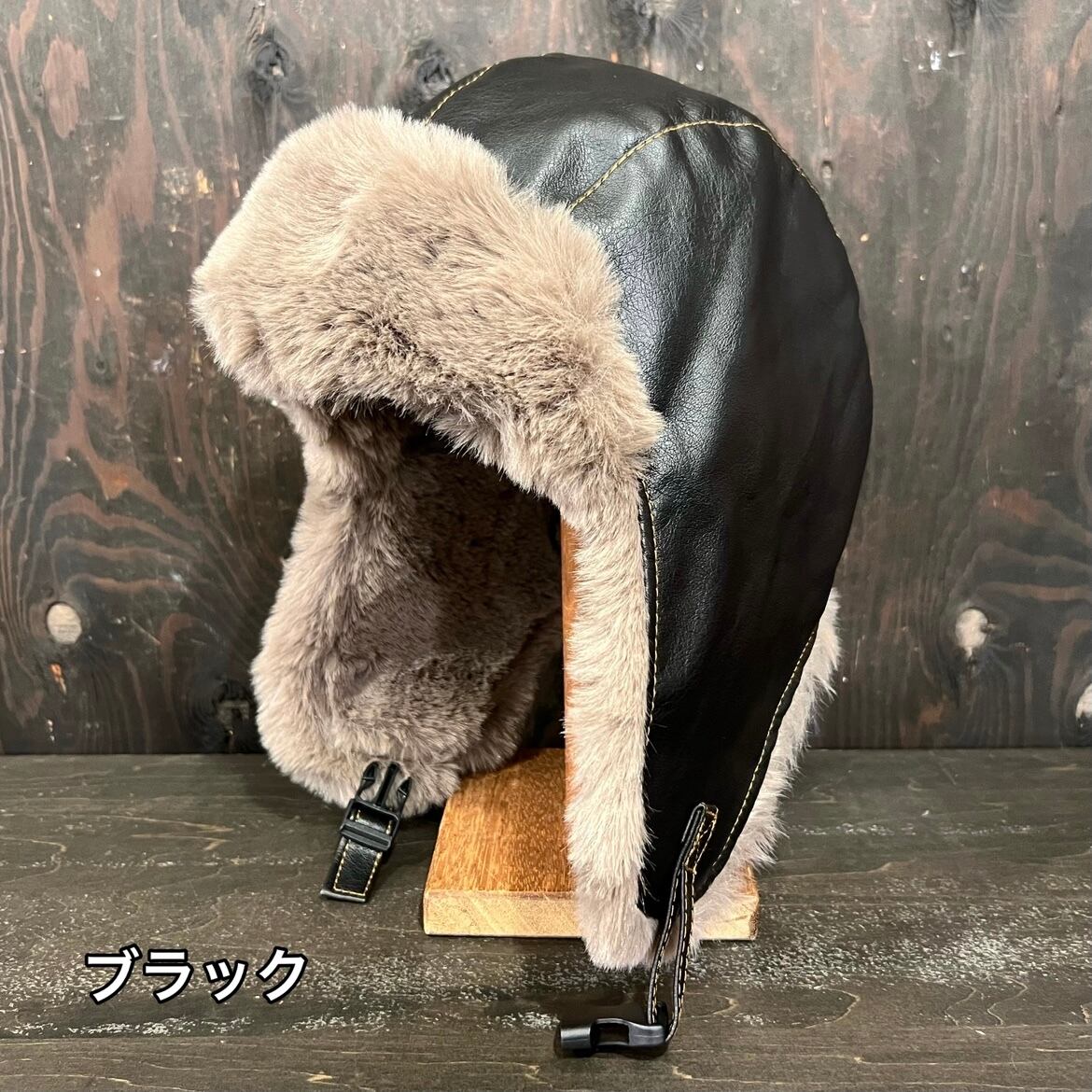 エコレザーにファーを施した、ボーリュームのあるフライトキャップになります。