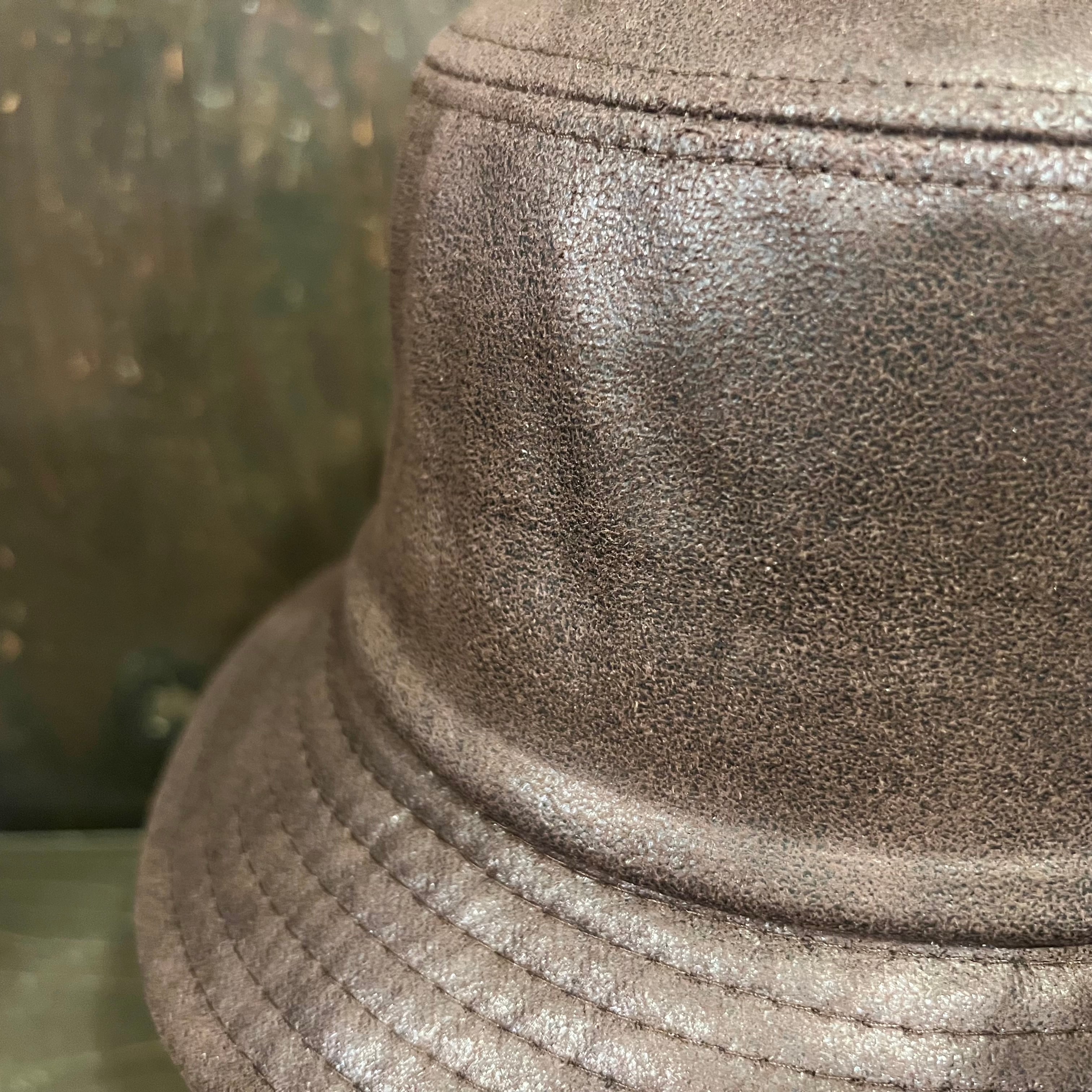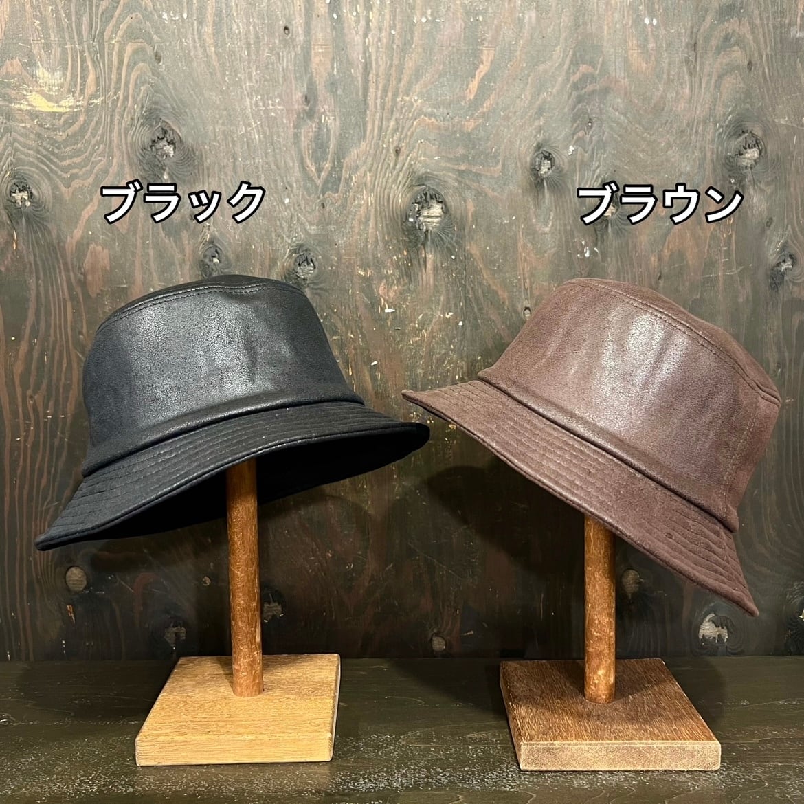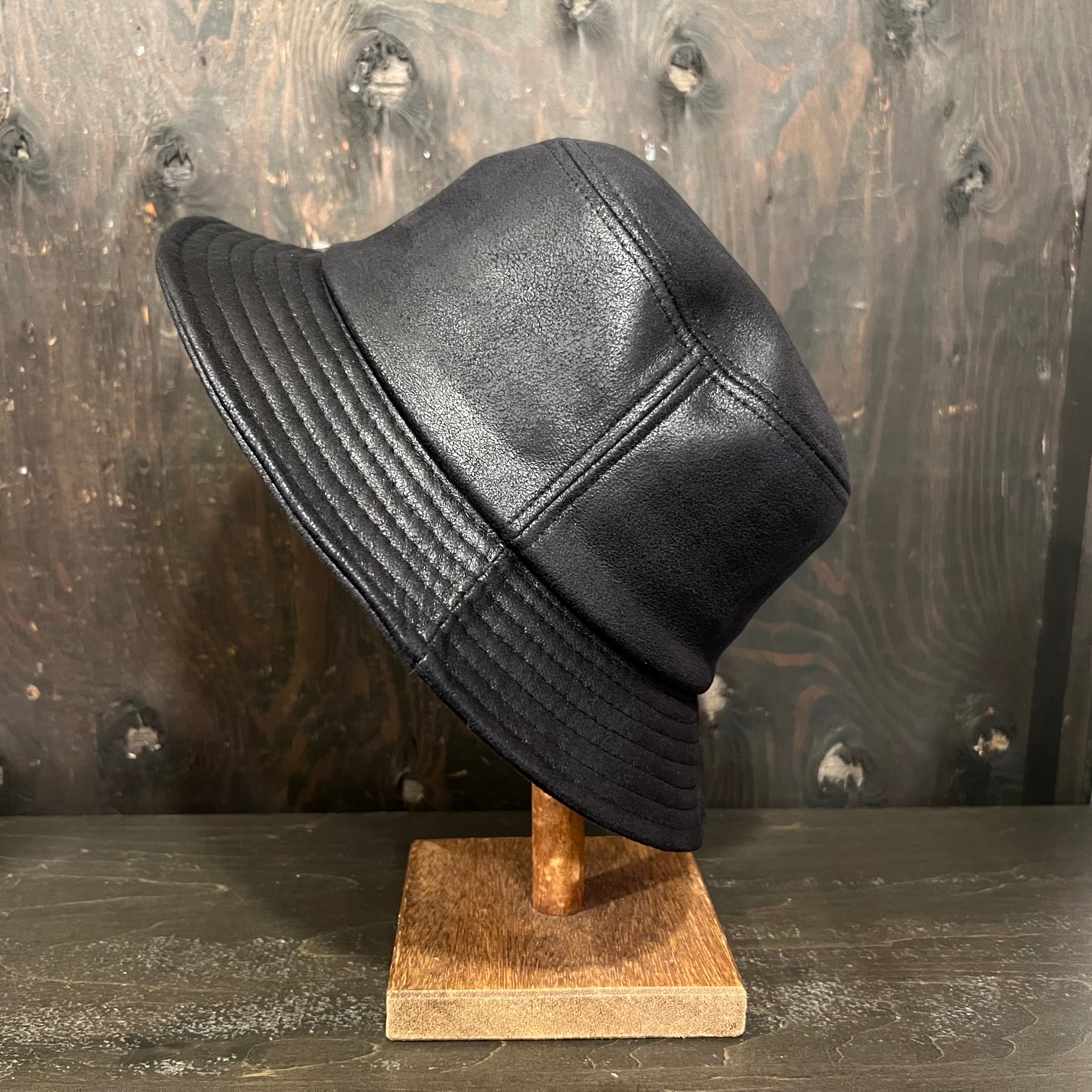 ウォッシュレザー風で使い込んだレザーのような風合いが楽しめる、渋めのかっこいいバケットハットになります。