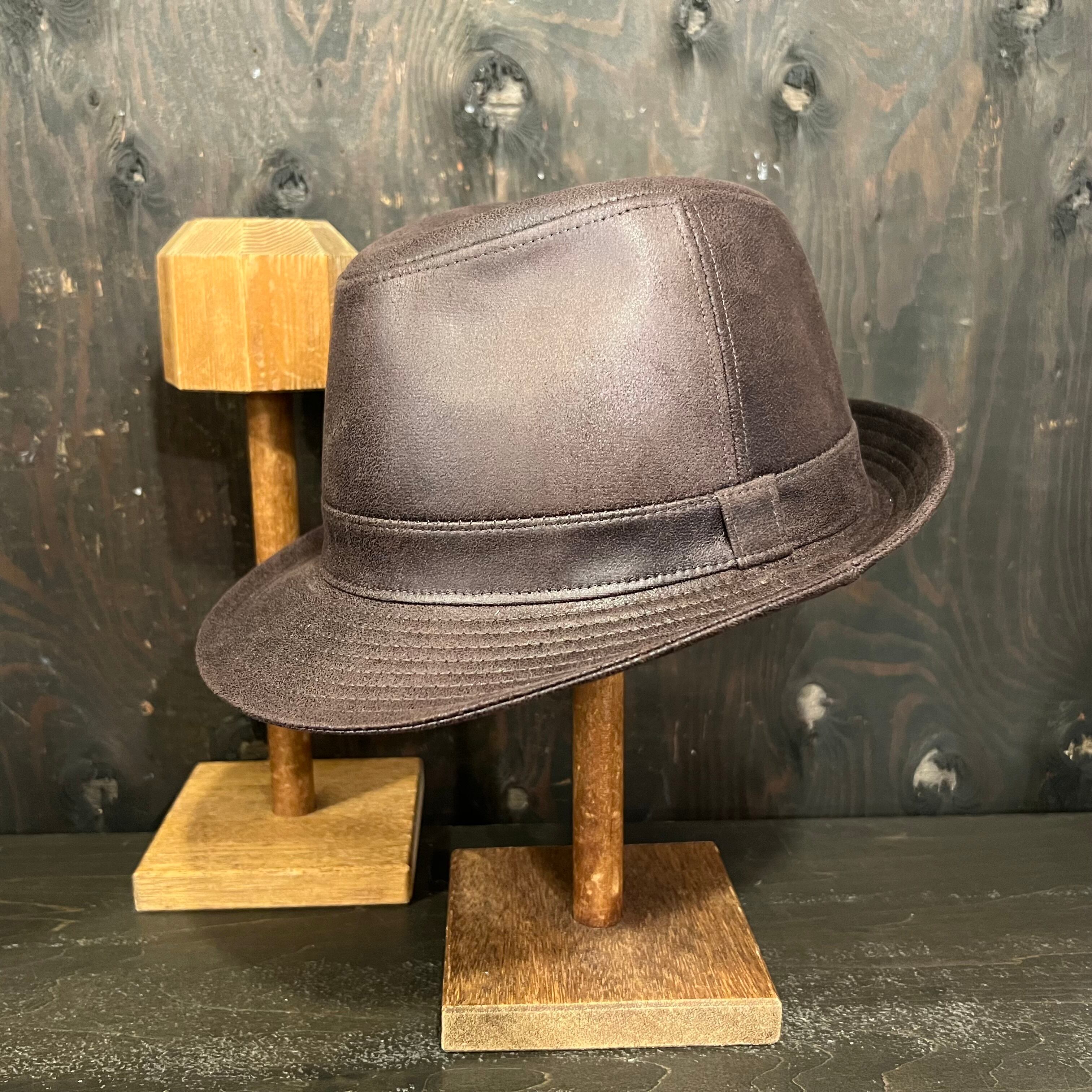 ウォッシュレザー風で使い込んだレザーのような風合いが楽しめる、渋めのかっこいいハットになります。