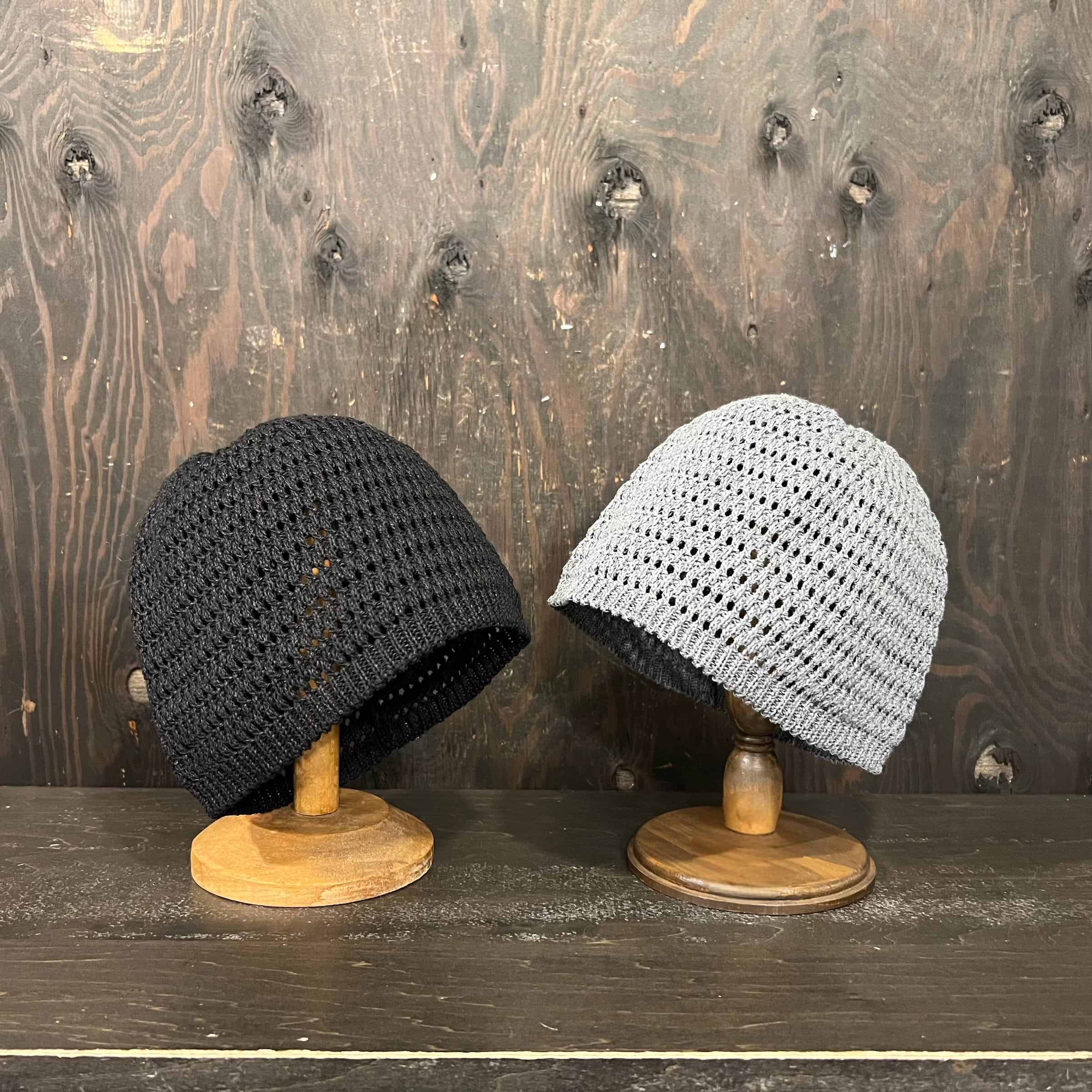 透かし編みで通気性の良いサマーニットビーニーになります。
