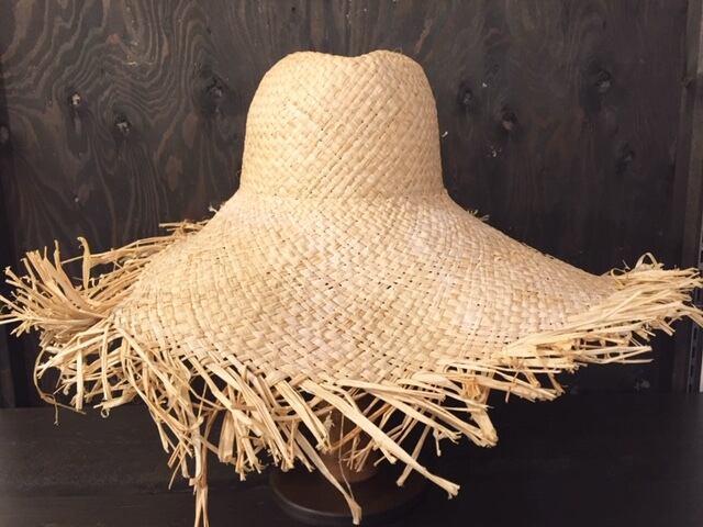 カットオフされた大きく広がるつばは存在感があり、天然素材の味があります。