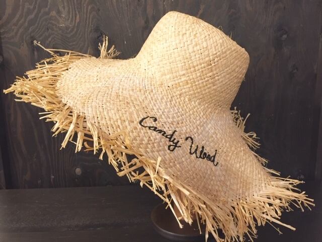 オリジナル ラフィアカットオフ20cmブリムcandywood刺繍中折れハットです。