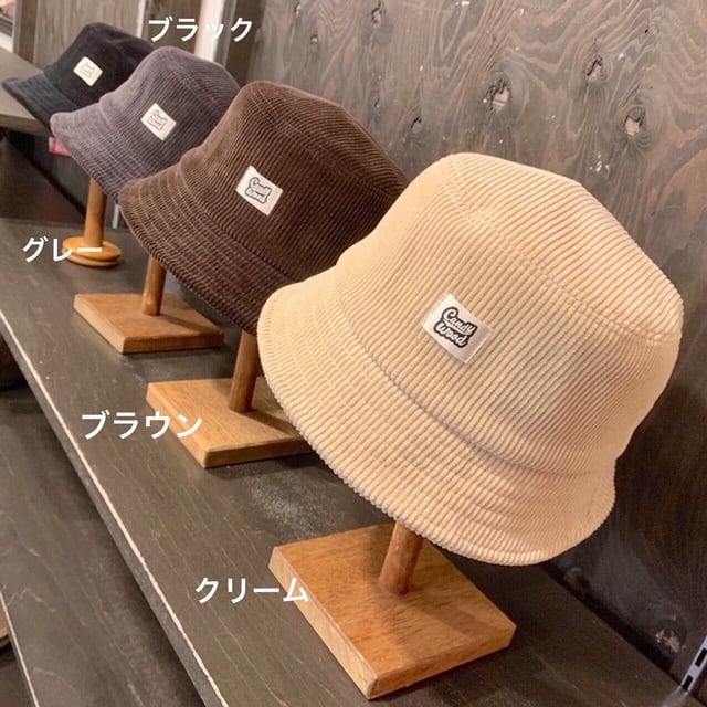 毎年人気のある、当店のメインロゴラベルをフロントに施したコーデュロイ素材のバケットハットになります。