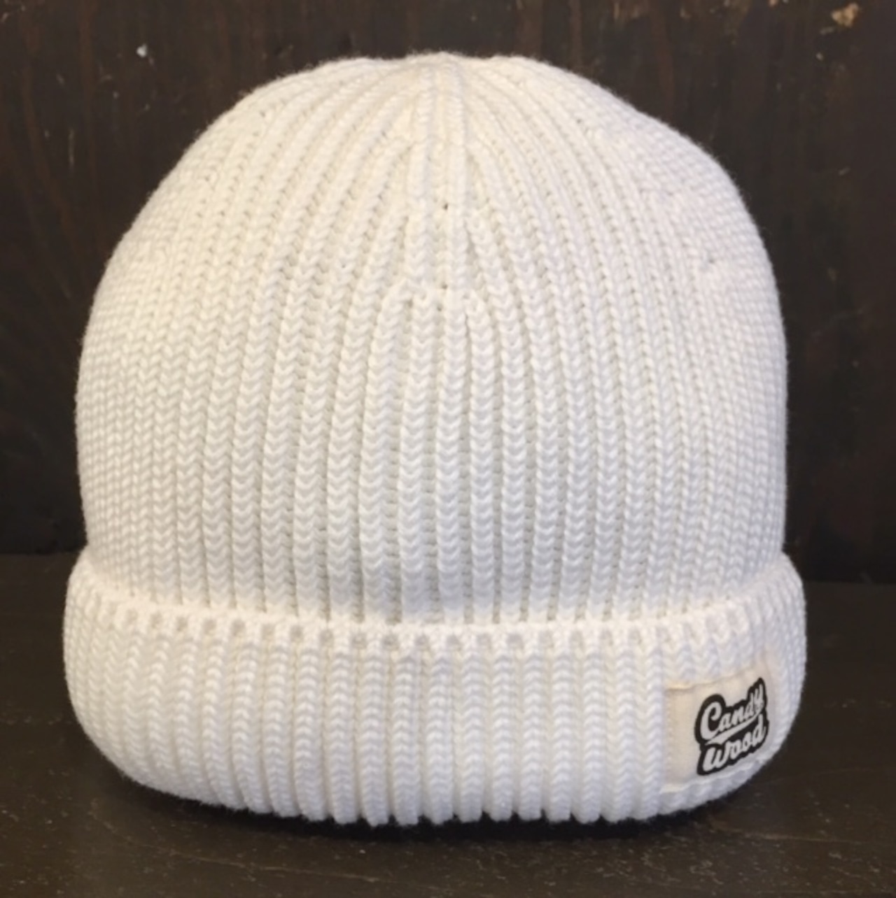 オリジナル コットン/アクリル1byリブ4/6面candywoodラベルショートビーニーです。