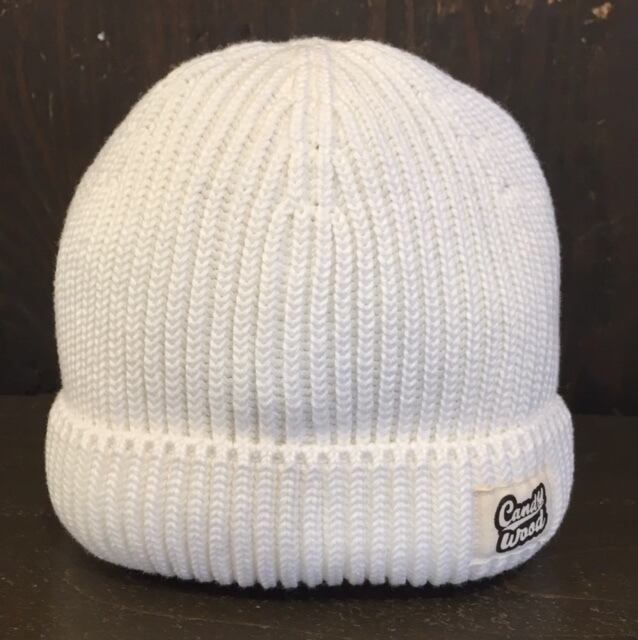 オリジナル コットン/アクリル1byリブ4/6面candywoodラベルショートビーニー アイボリー