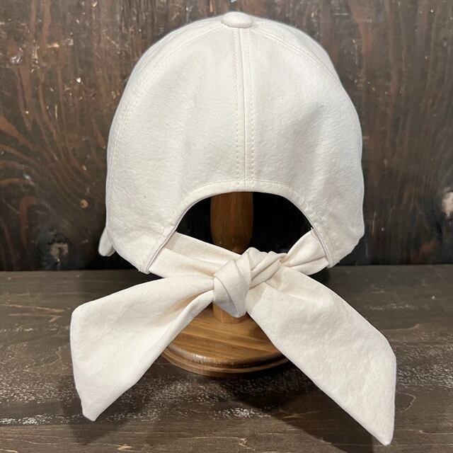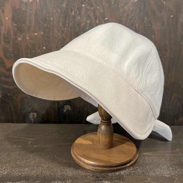 コットンシーチングワイヤー入ワイドブリムバックリボンキャップです。
