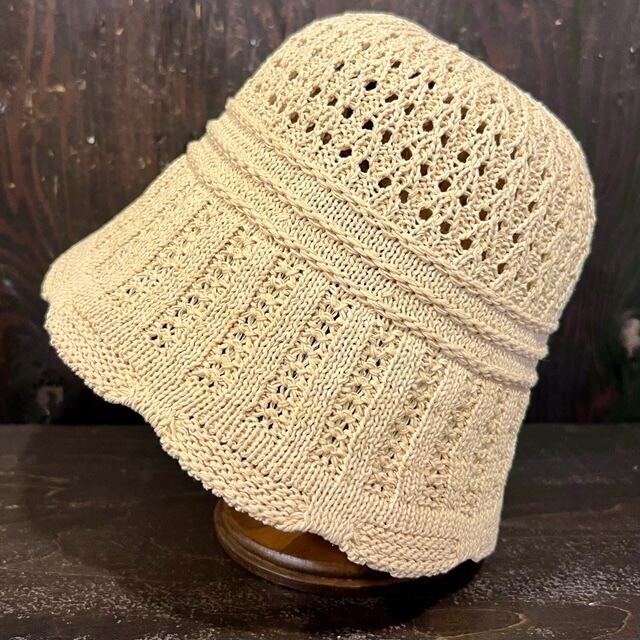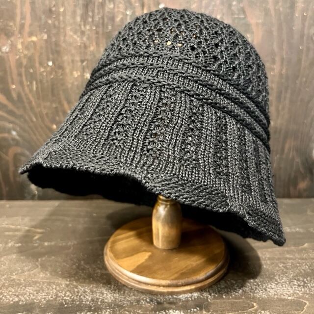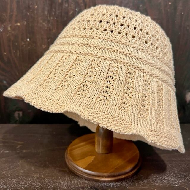 PEメッシュ編み×リブフリルニットハット