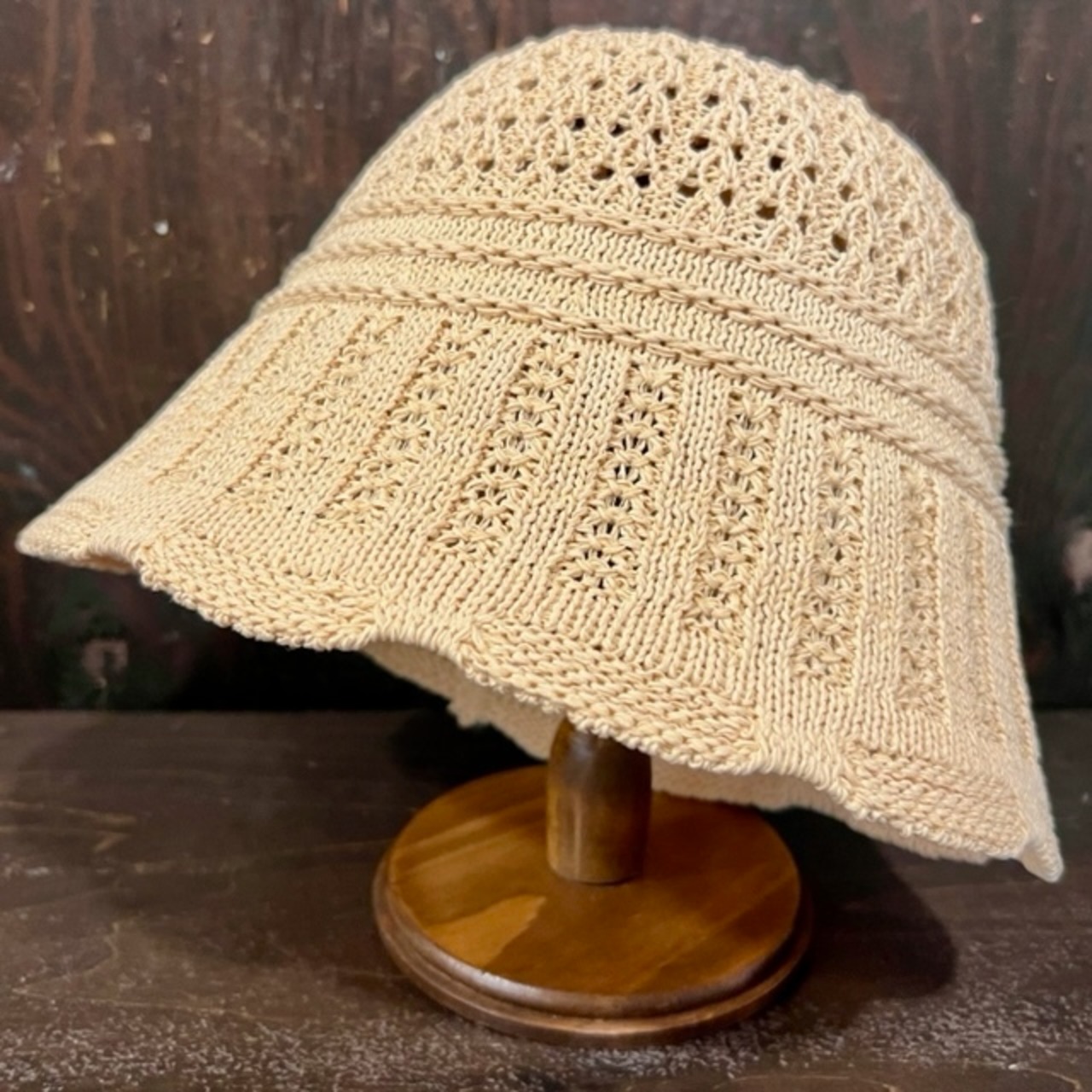 トップがドーム型のサマーニットハットになります。