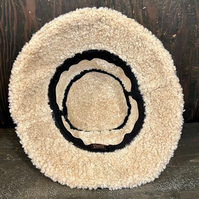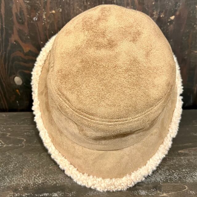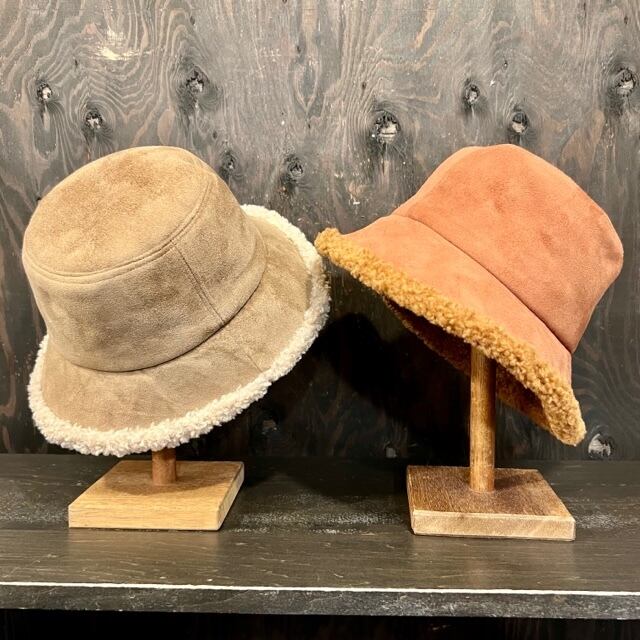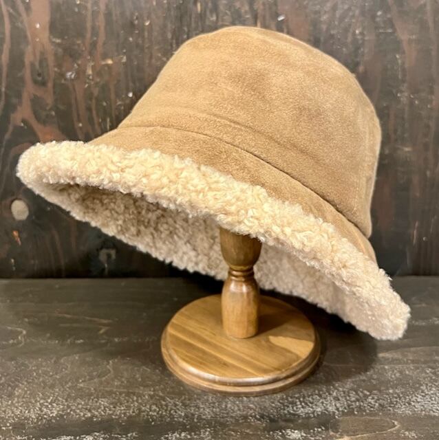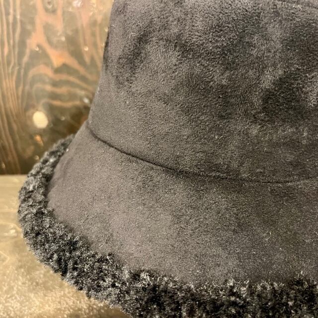 ムートンベースにプードルファーでつばを縁取りしたバケットハットになります。