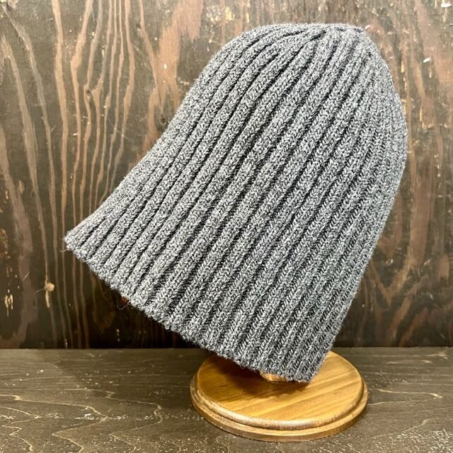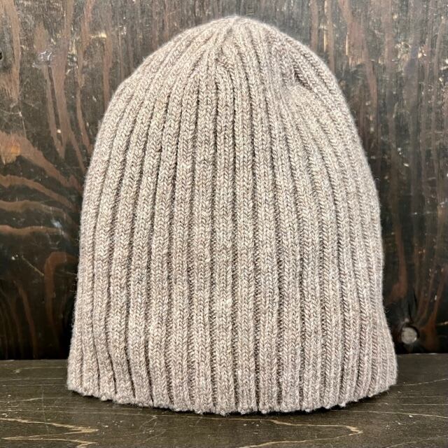 折り返しを作らずに着用する、シンプルなリブ編みビーニーになります。