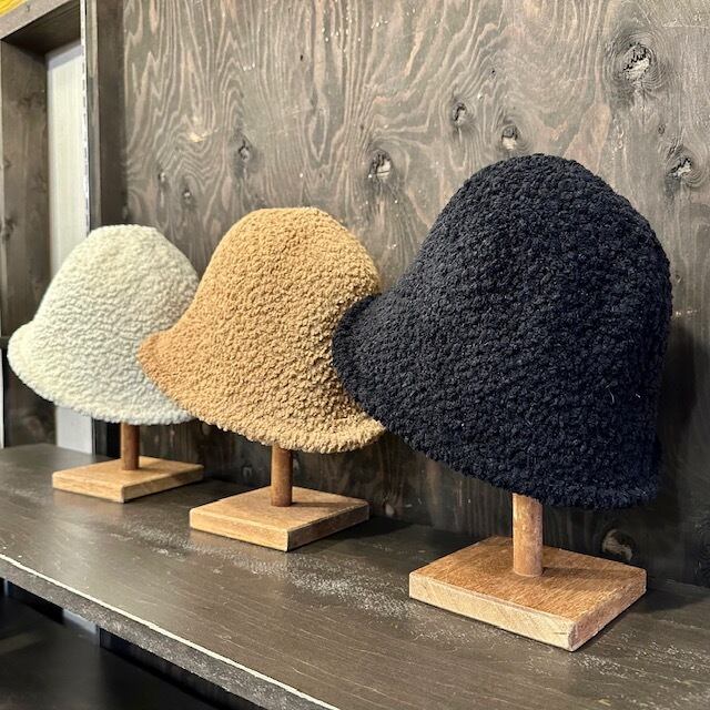 モコモコとしたボア素材で、ふんわりとした見た目も暖か味のあるハットです。