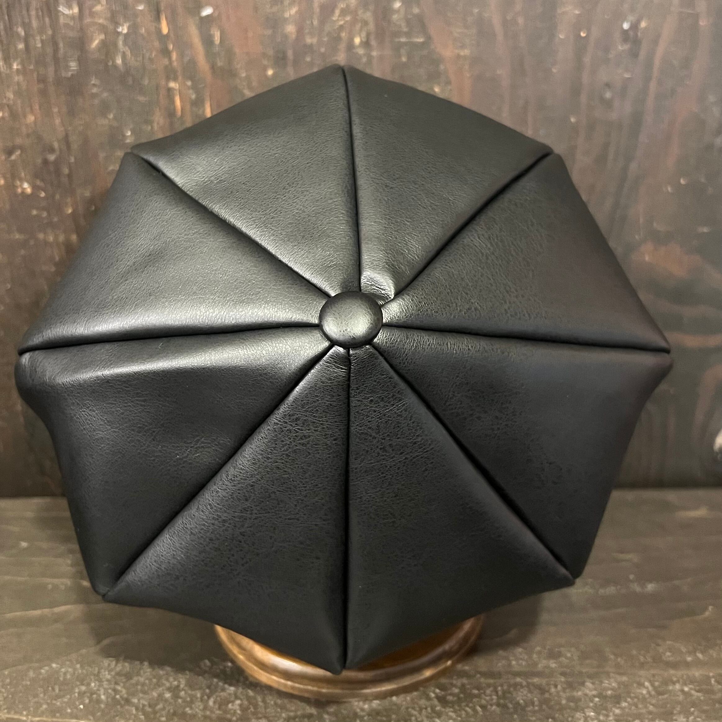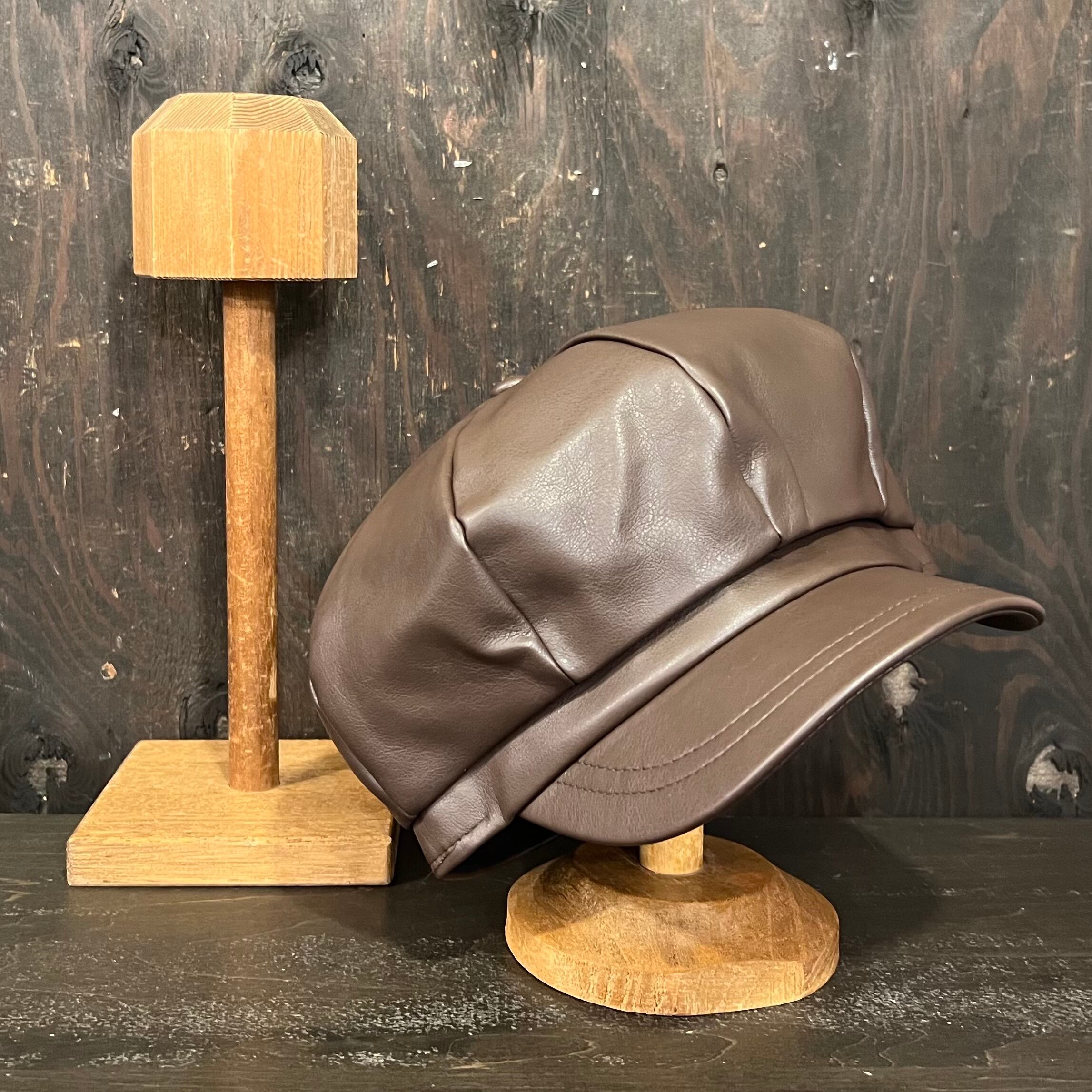 秋口~春先にかけて着用できる、エコレザー素材の8パネルのキャスケットになります。