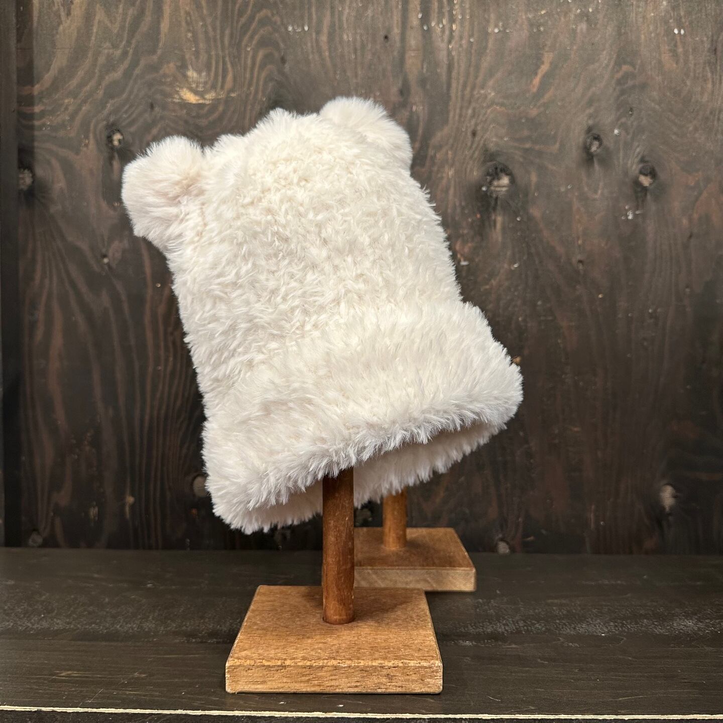 ふわふわとした柔らかい毛並みのくま耳ニット帽になります。
