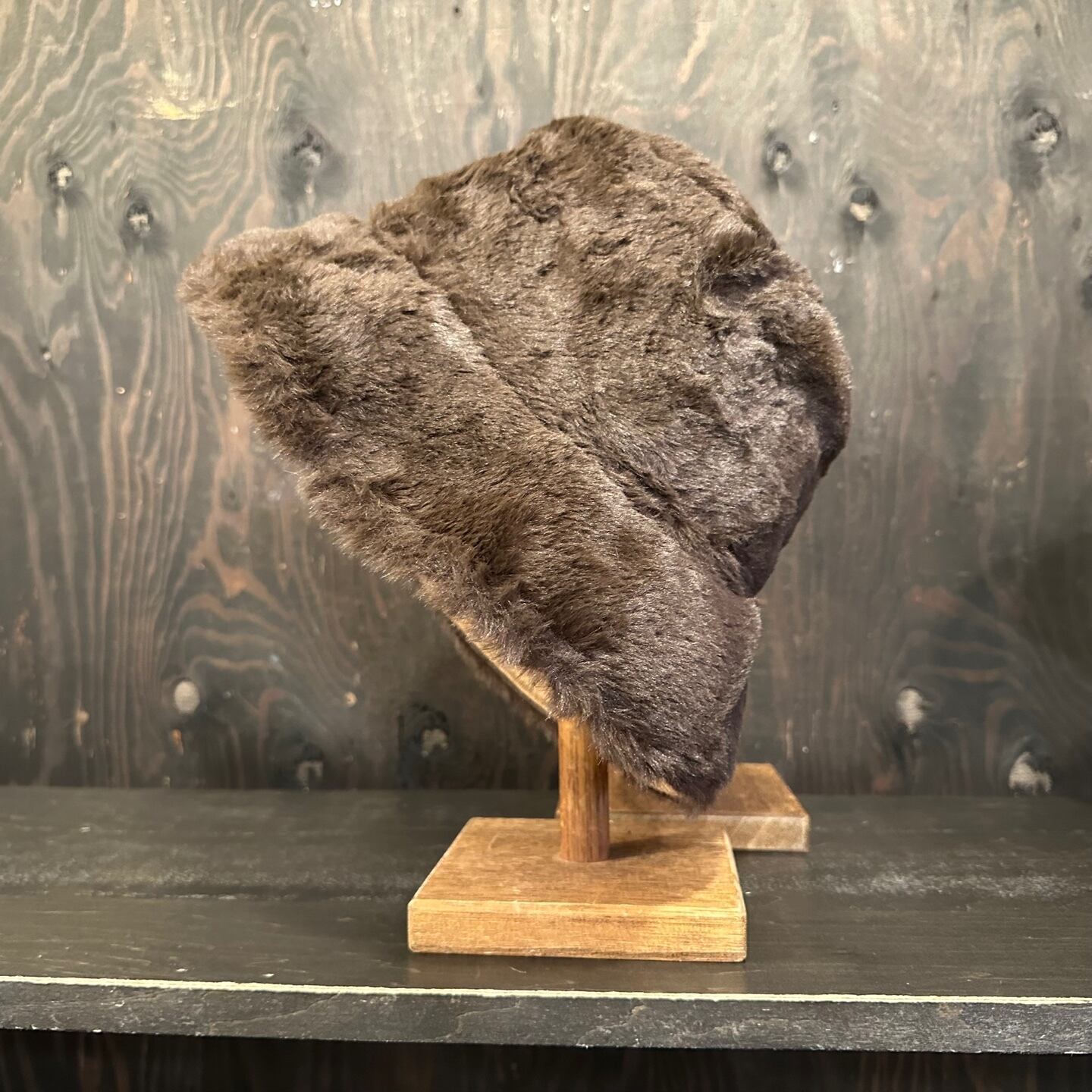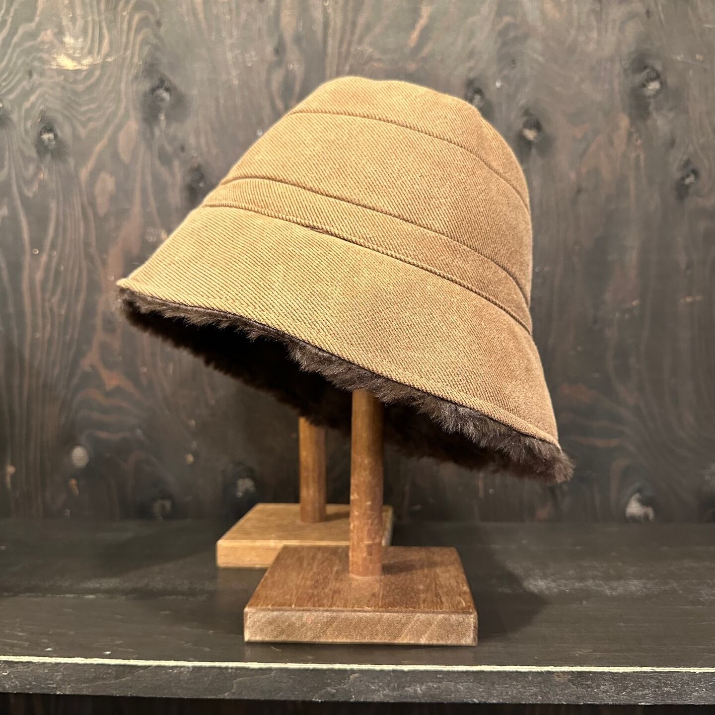 無地のツイル生地面とファー素材のリバーシブルタイプのバケットハットになります。