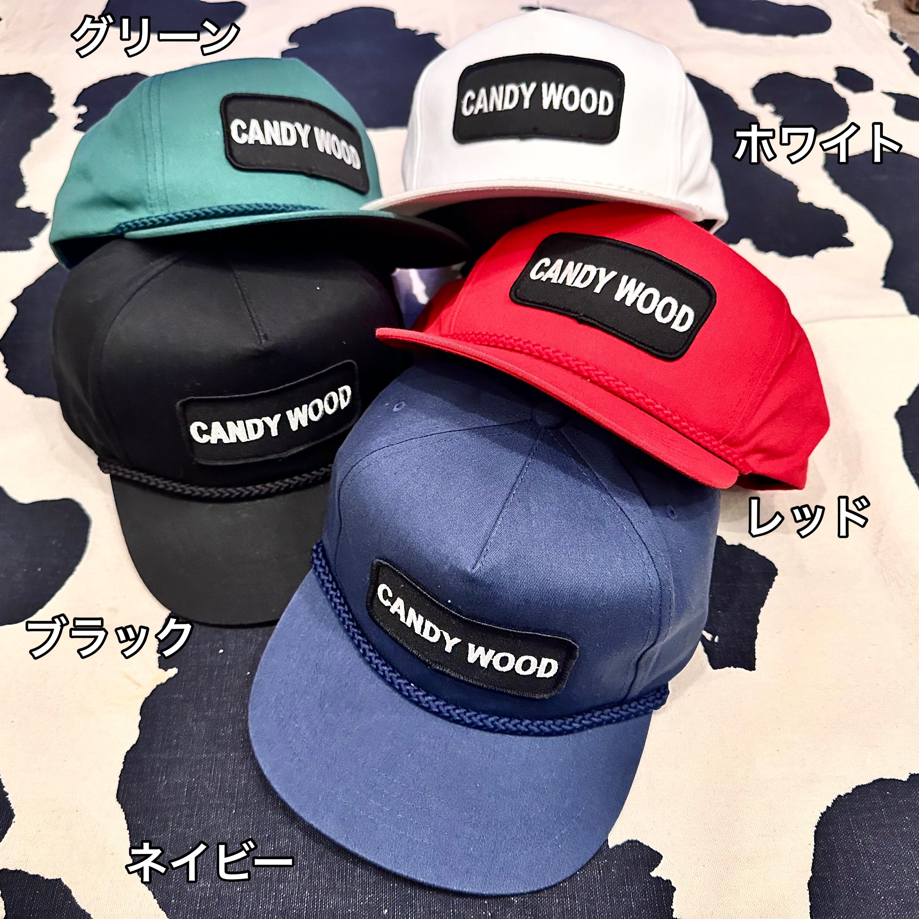 オリジナルCANDYWOODボックスロゴワッペントラッカーキャップです。