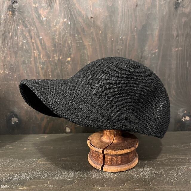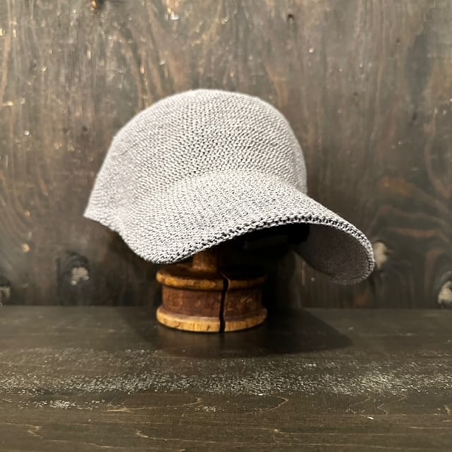 リネン/ナイロンガーター編バックレザーベルトキャップです。