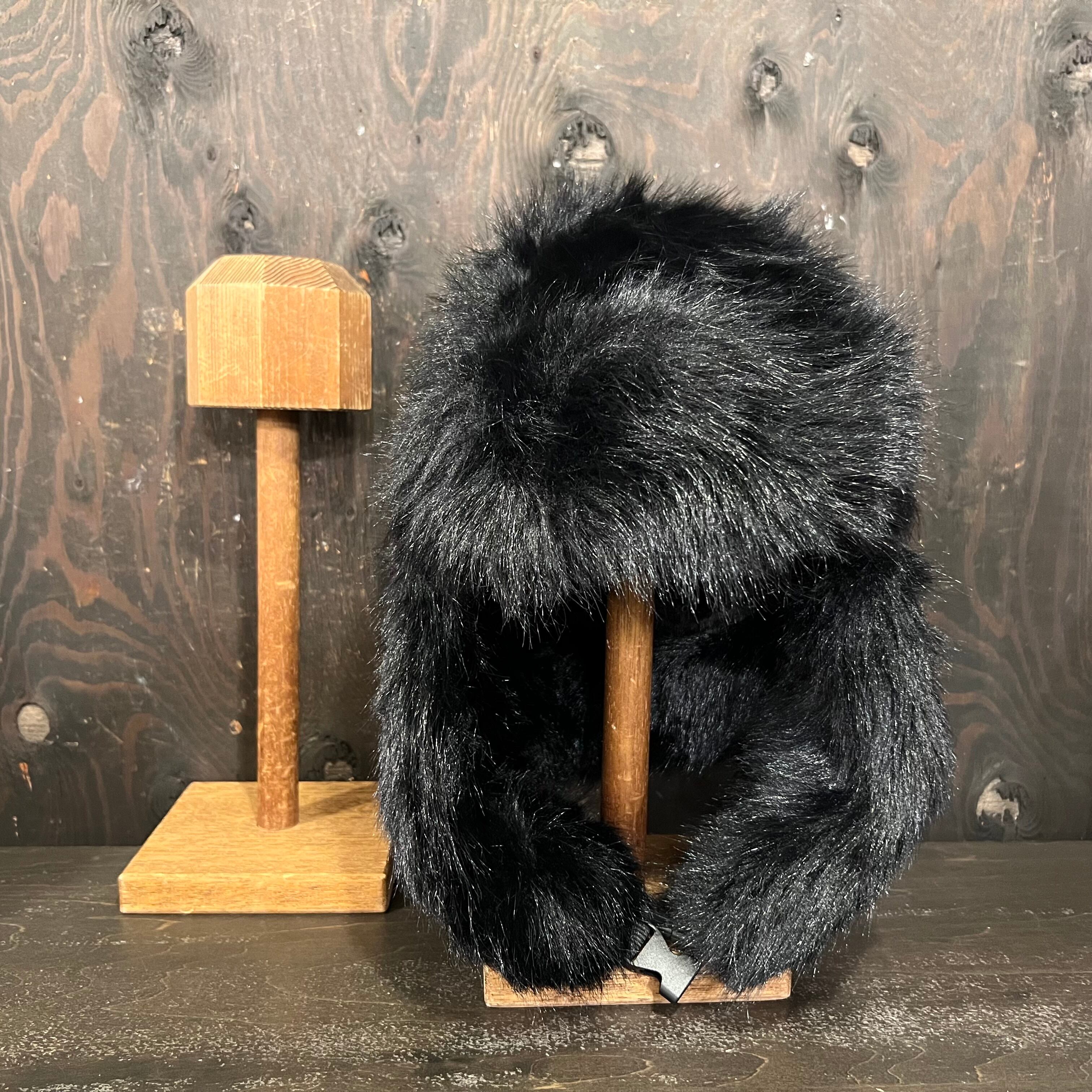 耳あてになる部分を下すとフェイス周りを覆うことができ、トップで留めるとファー帽子として着用できる2wayタイプです。