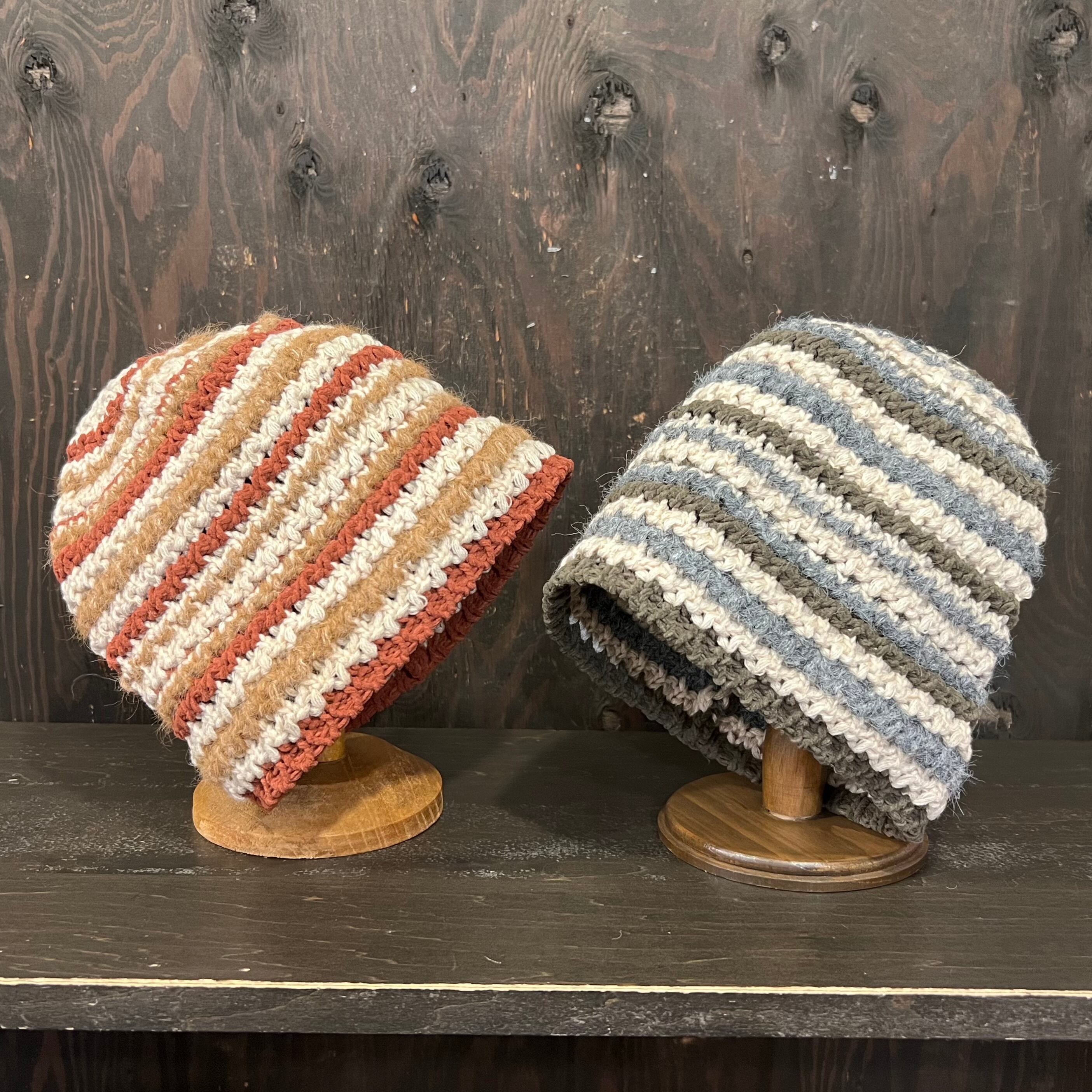 アクリルミックスニット アイボリーボーダータイトクラッシャーハットです。